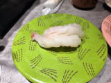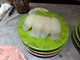 何を食しても、先ずネタが新鮮で、脂がのって美味い。本日食べたのは、甘エビ、北海たこ足、真いかゆず塩握り、いか耳、いかげそ握り、ねぎとろ、自家製しめさば、炙りえんがわ、本鮪赤身、本かつお、時しらず、真イワシ、トロニシン、かんぴょう巻き、浅漬け新香、杏仁豆腐、サーモンあら汁二杯の18品と、何としても思い出せない1品の合計19品。。ともかく美味かった。二人の大人、満腹大満足で¥4,400。、