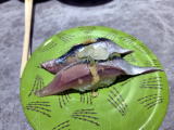 静岡産、本かつお、根室海峡標津産、初夏の若鮭時知らず、鰯、脂のり文句なし、トロニシン