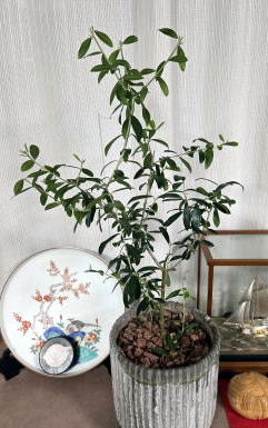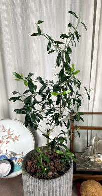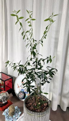 家内喜寿のお祝いで贈られて(2025.2.8)きた、日比谷花壇の「オリーブ・アンティックポット」の成長の記録。