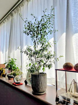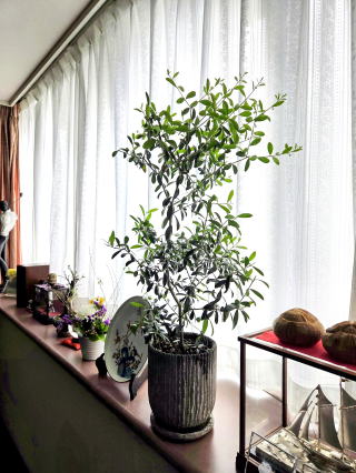 拙宅リビングは、家内の信州在住の友人から、家内誕生日に毎年送られてきた鉢植え、観音竹、オリーブ、鉢梅の緑で癒されている
