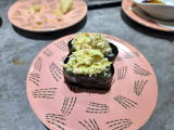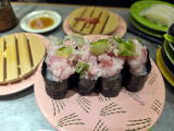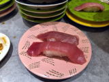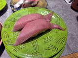何を食しても、先ずネタが新鮮で、脂がのって美味い。本日食べたのは、甘エビ、北海たこ足、真いかゆず塩握り、いか耳、いかげそ握り、ねぎとろ、自家製しめさば、炙りえんがわ、本鮪赤身、本かつお、時しらず、真イワシ、トロニシン、かんぴょう巻き、浅漬け新香、杏仁豆腐、サーモンあら汁二杯の18品と、何としても思い出せない1品の合計19品。。ともかく美味かった。二人の大人、満腹大満足で¥4,400。、